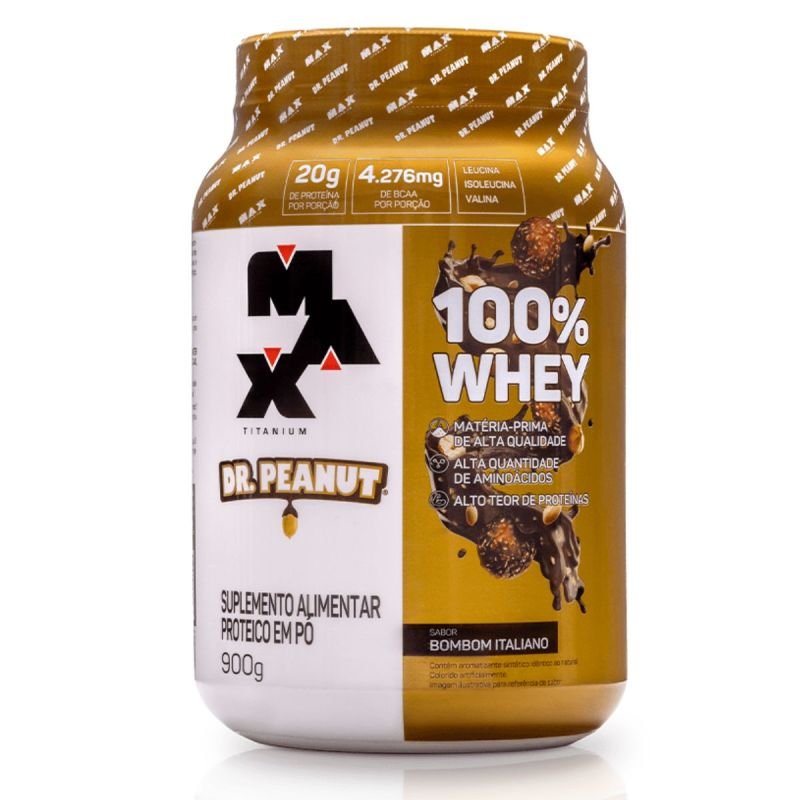 100% WHEY da Max Titanium, em colaboração com a Dr. Peanut, é a proteína ideal para quem busca performance e sabor em um único suplemento.Sua formulação à base de proteína concentrada do soro do leite (WheyProtein Concentrate), auxilia na formação dos músculos e ossos. Com sabores exclusivos e campeões de vendas da Dr. Peanut, é elaborado com matéria-prima de alta tecnologia e valor biológico, trazendo rápida digestibilidade e elevada concentração de aminoácidos essenciais.